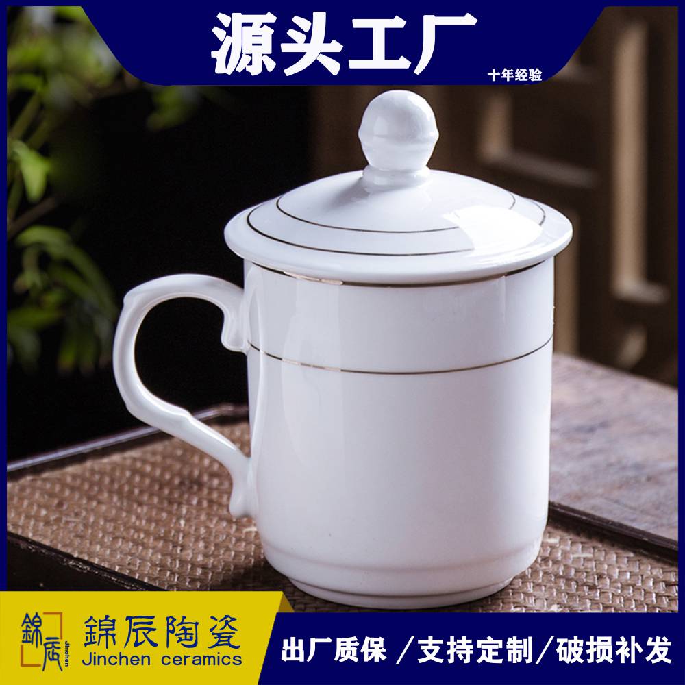 酒店宾馆会议陶瓷茶杯带盖泡茶水杯景德镇礼品杯